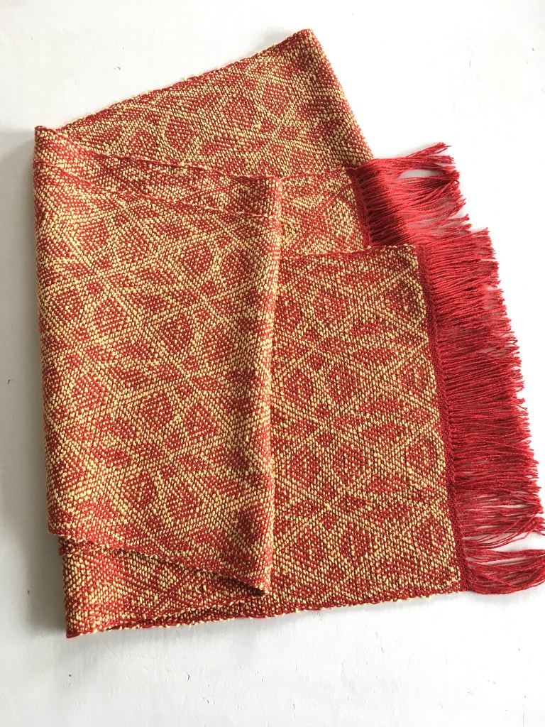 Heerlijke rode zijde, deze twee sjaals zijn geweven in een ruitpatroon.