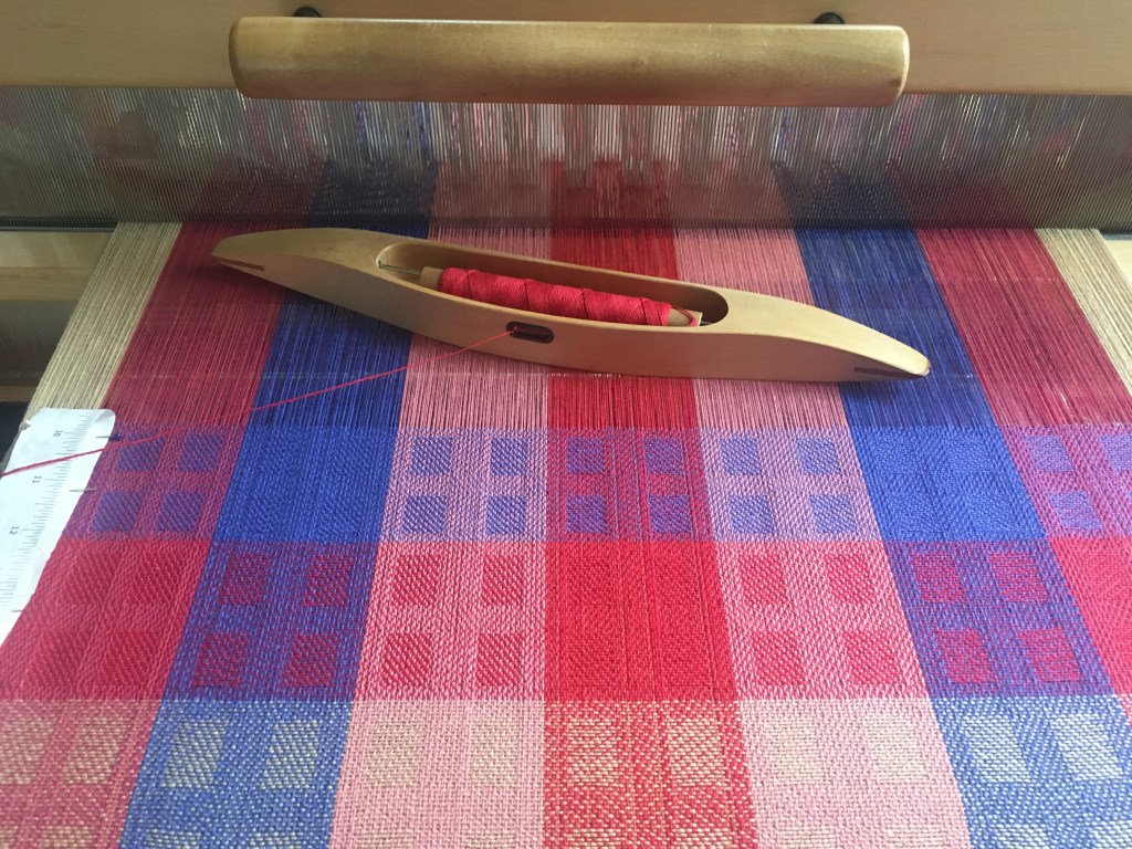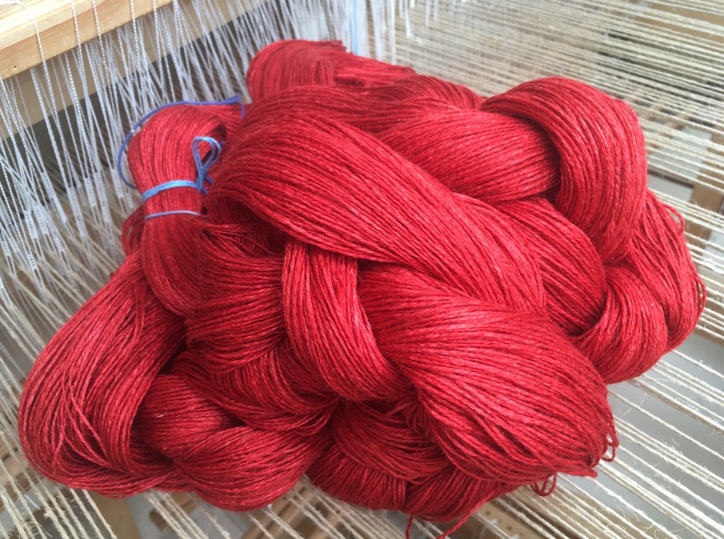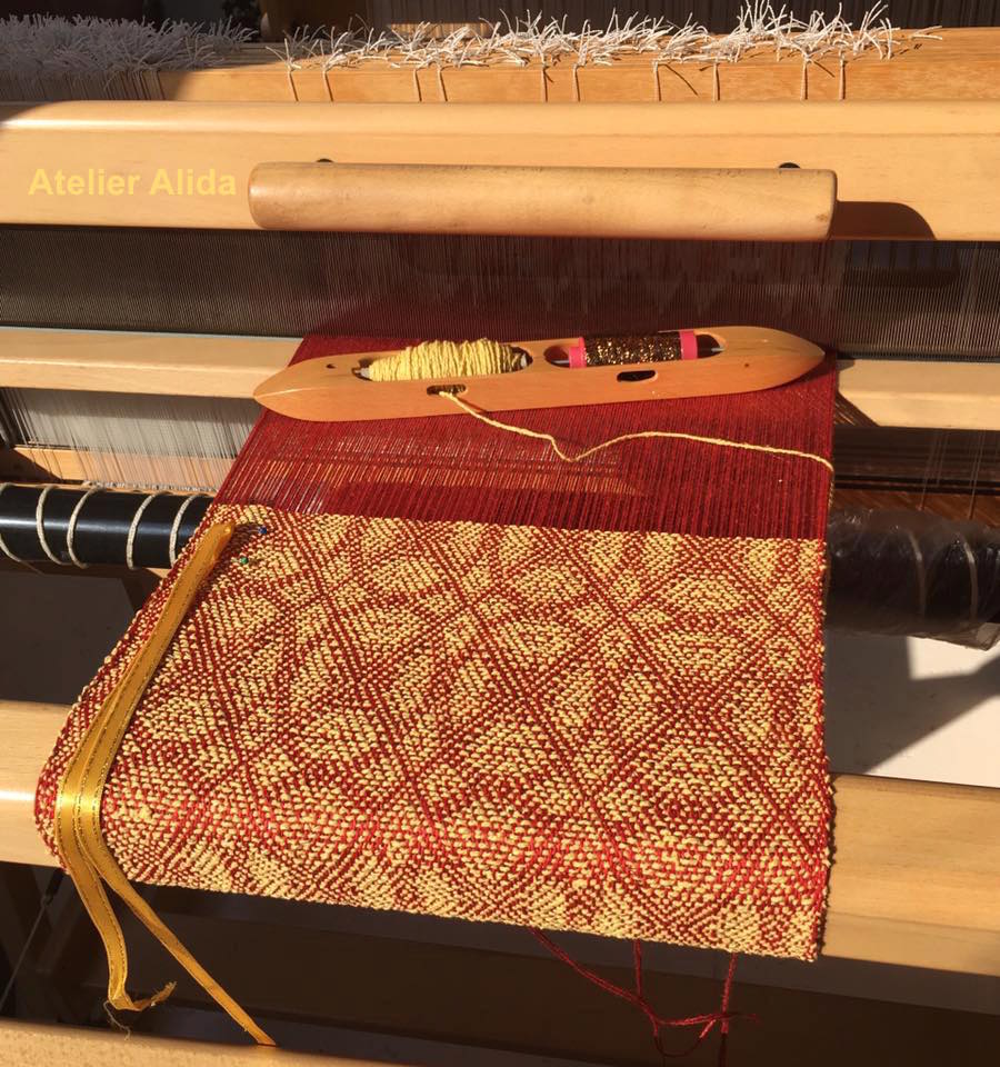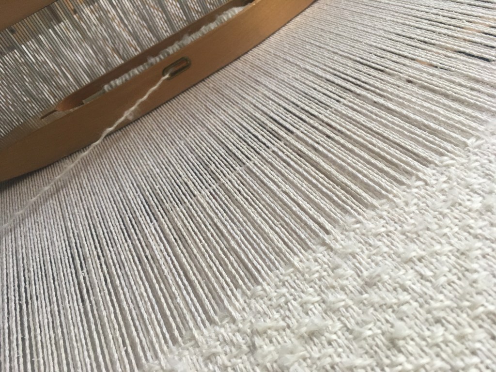 Een nieuw jaar een nieuwe ketting. Op de Octado komt een ketting van linnen 20/2. De schering wordt 12 draden per cm. Dichter dan het vorige weefsel hier op de foto. Wordt vervolgd.
