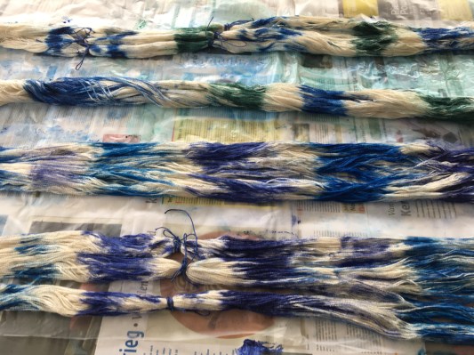 zijde verf in blauw en groen